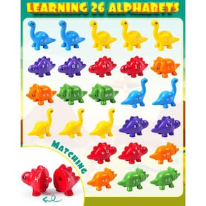 - Jogos divertidos de ortografia e combinação: 13 dinossauros para 26 letras! Existem as mesmas letras em cada lado das peças de dinossauro, o que o torna capaz de soletrar palavras simples. Lindos dinossauros do alfabeto são fáceis de montar, misturar, combinar e armazenar com uma bolsa de cordão portátil.