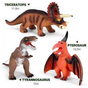 Apresentamos nosso conjunto de 7 brinquedos de dinossauros gigantes, incluindo o poderoso TRex, Pterodáctilo, Espinossauro, Tricerátops, Braquiossauro, Giganotossauro e Velociraptor Azul. Com esses dinossauros, seu filho pode criar um mundo Dino realista e embarcar em aventuras imaginativas. Os brinquedos de dinossauro são perfeitos para estimular a imaginação e criatividade da criança, além de promover o amor pela ciência e aprendizado. Realistas e detalhados, são ideais tanto para exposições educativas quanto para brincadeiras diárias. Feitos de borracha macia e durável, garantem segurança durante a brincadeira. Um presente perfeito para crianças e crianças pequenas, sendo ótimos como lembrancinhas de festa, presentes de aniversário, Natal ou Ano Novo. Meninos e meninas vão adorar brincar com esses dinossauros. Confira mais detalhes e garanta horas de diversão para os pequenos!