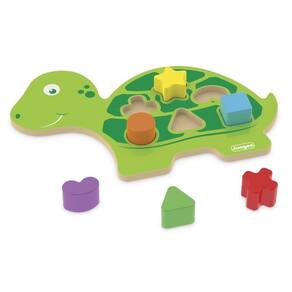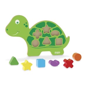 Cada animal apresenta 6 rebaixos com formas geométricas simples, onde a criança deve encaixar as peças plásticas coloridas que acompanham o produto.