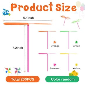 - Confiável e grande: o brinquedo com mosca adota material plástico, forte, impermeável e não se deforma facilmente, a haste tem 7,2 polegadas de comprimento e a parte da hélice tem 6,4 polegadas de comprimento, adequada para brincar, brilhante e grande para notar