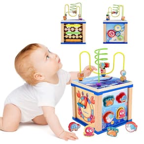 -?Brinquedos multiuso 5 em 1?Este brinquedo didático para crianças pequenas tem cinco superfícies de jogo diferentes, incluindo um equipamento giratório, labirinto de miçangas, relógio didático, ábaco de 5 cores e blocos de 4 cores. O centro de atividades Play Cube é um ótimo brinquedo montessori que manterá seu filho envolvido por horas e desenvolverá habilidades de pensamento, sensoriais e de coordenação.