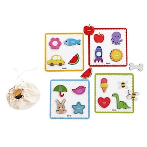 - Brinquedo de madeira Toque e Encontre, da BaBeBi - Cód. 6041. - Coloque a mão no saquinho, tateie uma peça sem olhar e tente adivinhar qual é, nos tabuleiros. - Indicado para crianças a partir de 3 anos. - Cada tabuleiro mede 18 x 18 cm. - Contém 4 tabuleiros, 17 peças e 1 sacolinha. - Feito de madeira de Reflorestamento e Certificada. - Possui o Selo Abrinq e o Selo de Segurança do Brinquedo do InMetro: CE-BRI/SARON-N 00135-19 Ean: 7898102626418