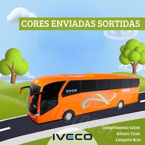 Brinquedo de ônibus de viagem iveco - cores Ônibus iveco brinquedo Você já notou como é fundamental para as crianças desenvolverem sua imaginação e criatividade durante as brincadeiras Sem um brinquedo que estimule essas habilidades, elas podem ficar entediadas e desmotivadas a explorar novas histórias e aventuras. O ônibus iveco é a solução ideal para transformar a brincadeira em uma verdadeira jornada de imaginação com um design vibrante e detalhado, ele encanta tanto crianças quanto colecionadores, oferecendo horas de entretenimento criativo. É o presente perfeito para seu filho, permitindo que ele descubra novos destinos e crie histórias emocionantes. Benefícios - estimula a criatividade e a imaginação - design atraente que agrada todas as idades - proporciona horas de diversão e entretenimento Especificações técnicas - material: polipropileno - dimensões: comprimento 42cm x altura 11cm x largura 08,05cm - peso: aproximadamente 320g - cores: azul, laranja, vermelho enviado conforme disponibilidade Conteúdo da embalagem - 01 ônibus iveco Não perca a chance de proporcionar momentos incríveis de diversão e criatividade para seu filho adquira já o ônibus iveco e deixe a diversão começar Informações importantes sobre a compra - com de fábrica Dúvidas frequentes: 2 - em quanto tempo meu pedido será enviado 3 - é seguro fazer esta compra Resposta: desde a fundação da nossa empresa, temos milhares de clientes satisfeitos em outras lojas online. Somos uma loja oficial neste marketplace. Além das garantias da plataforma, oferecemos de fábrica. 4 - os produtos têm Resposta: sim, oferecemos de 30 dias em todos os nossos produtos. Se houver qualquer problema, resolveremos da melhor forma possível. 5 - esta compra é segura Resposta: sim, garantimos total segurança na sua compra e sigilo dos seus dados. 6 - e se eu não gostar do produto, terei meu dinheiro de volta Resposta: de acordo com o cdc código de defesa do consumidor , todo cliente de compras online tem até 7 dias para devolver o produto em caso de arrependimento, sem custo na devolução. Você será reembolsado em 100% do valor da compra. Caso tenha alguma dúvida, envie-nos uma mensagem e responderemos o mais rápido possível. Homologação Inmetro: 7428/2021-BRI-5 Marca: Não Informado Ean: 7894201522880
