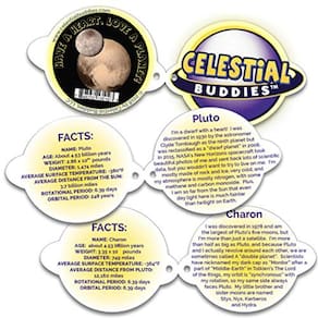 2 TAMANHOS PERFEITOS: Plutão 7 polegadas (da cabeça aos pés) e Caronte 6 polegadas (da cabeça aos pés). Plutão é um anão com um coração! Caronte é uma das 5 luas de Plutão. Como este planeta anão e esta lua giram em torno um do outro, eles às vezes são chamados de planeta duplo. Plutão e Caronte estão ligados juntamente com ímãs. Eles são do tamanho perfeito para abraçar e são ambos muito fáceis para as crianças carregarem. Eles também fazem decorações de quarto adoráveis para crianças que amam o espaço! ? SEGURANÇA: Estes corpos celestes de pelúcia são feitos de material de poliéster novo e macio e aconchegante que atende aos regulamentos de brinquedos CPSC dos EUA e da UE. ? GRANDE PRESENTE: Os rostos expressivos e os detalhes realistas fazem de Plutão e Caronte companheiros divertidos. Estes adoráveis brinquedos de pelúcia irão expandir o interesse dos seus filhos no espaço, astronomia e ciência. Eles são um grande presente para qualquer pessoa de qualquer idade que ame o espaço. ? EDUCACIONAL: As etiquetas suspensas de Plutão e Caronte fornecem fatos educacionais divertidos, incluindo idade, peso, diâmetro, períodos itais e muito mais. Oferece muitos iniciadores de conversa para você e seu filho sobre ciência, espaço e astronomia. ? DICAS DE LAVAGEM: Para uma companhia mais longa, você deve limpar esses dois com detergente neutro e água fria. Você pode lavar Plutão e Caronte na máquina de lavar em água fria, ciclo suave, se necessário. Melhor secar em fogo baixo ou nenhum calor em uma fronha ou , para reduzir o risco de coçar os olhos.