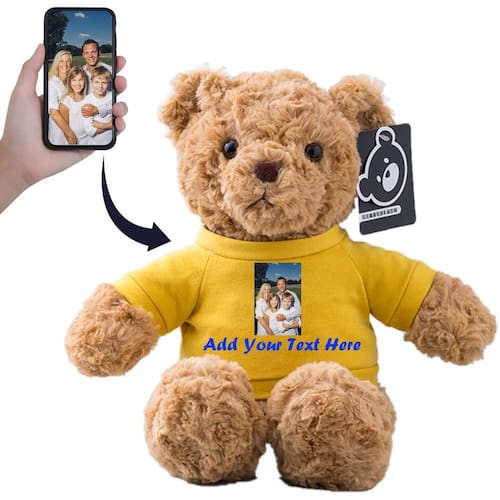 Presentes personalizados para mulheres e homens, ursinhos de pelúcia com texto personalizado, ursinho de pelúcia personalizado com camiseta como presentes especiais para o aniversário de Natal e Dia dos Namorados (texto e foto de 13 polegadas) -?Personalizável?A qualidade editável de nosso ursinho de pelúcia permite que você adicione qualquer coisa, um nome, o logotipo da escola ou sua bênção. Com um visual atraente e real, é um excelente presente personalizado para ele/ela/amigos/familiares/graduados, etc. Clique em “Personalizar agora” e faça o upload de suas informações personalizadas. Deixe que este urso de dia dos namorados fale por você! -?Material de alta qualidade?Feita de pele de alta qualidade, nossa pelúcia de urso é macia e confortável, fácil de lavar devido à sua fabricação à prova d'água. Você certamente se apaixonará por ela! As formas são projetadas por designers de renome mundial e produzidas por trabalhadores qualificados para garantir que seu texto personalizado seja impresso com precisão. Com olhos brilhantes e uma expressão confiante, o pelúcia Teddy Bear simboliza coragem, vigor e autoconfiança. -?Reconfortante e significativo?Totalmente costurado à mão e cuidadosamente feito, como uma obra de arte, nosso ursinho de pelúcia é adequado para mostrar seus parabéns e incentivo de uma forma especial, exclusiva de seu relacionamento. Com certeza os fará rir! Será um parabéns muito emocionante e inesquecível, ela/ele ficará emocionada e guardará este presente personalizado com eles por muitos anos. -?Presentes impressionantes?Nosso ursinho de pelúcia de Dia dos Namorados agradam a todas as idades, perfeitos para presentear em várias ocasiões, como: presentes de aniversário/Dia dos Namorados/Natal/formatura para ela e ele/formatura universitária! Este presente personalizado é uma bênção muito sincera que certamente impressionará o destinatário por muito tempo e o guardará por muitos anos como uma lembrança linda e preciosa para você e ele/ela. -?Excelente satisfação garantida?Basta expressar parabéns e incentivo aos seus amigos/familiares adicionando uma foto ou um texto engraçado aos presentes personalizados do ursinho de pelúcia. É nossa principal prioridade fornecer uma experiência satisfatória e de alta qualidade aos nossos clientes. Se você tiver alguma dúvida, sinta-se à vontade para entrar em contato conosco a qualquer momento, sempre tomaremos medidas imediatas para garantir a excelente satisfação do cliente.