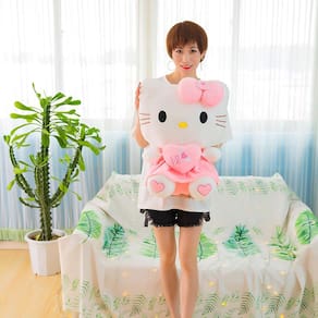 Brinquedos de pelúcia para gatos para Hello Kitty Brinquedos de pelúcia com laço rosa de 23 polegadas, boneco fofo de pelúcia, Natal, Páscoa, festa de aniversário, presente para estudantes (médio, coração)