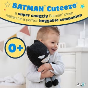 - BATMAN CUTEEZE: O menor super-herói de Gotham está aqui! Este adorável boneco de pelúcia do Batman apresenta detalhes bordados, feijão na barriga e rugas nas pernas, tornando-o perfeito para aconchegos sem fim e diversão na hora de brincar.