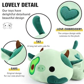 Sugerimos que você limpe com suas mãos. Para manter a cor e a vibração, basta limpar no local conforme necessário. O material do nosso brinquedo não é fácil de sujar. - Material: A pelúcia de vaca Avocado Love é preenchida com algodão elástico que é mais macio do que o comum, tecidos agradáveis à pele dão a você uma melhor sensação de toque na pele, tornando o travesseiro muito macio e confortável. - Tamanho: 30,5 cm (a medição manual pode ter um erro de 1,2 a 3,8 cm). O travesseiro tem um tamanho adequado que é uma sensação perfeita para abraçar. - Adequado: Crianças/Família/Amigos/Parentes não podem perder! Ótima opção para abraçar travesseiro de cama para adultos e crianças também. Adequado para quarto, sala de estar, família, escritório, etc. - Melhor presente: basta surpreender seus amigos com este travesseiro de brinquedo de pelúcia adorável, exclusivo e macio. - Fácil de limpar: Prática para os pais, esta vaca de pelúcia é fácil de limpar e manter. Pode ser lavado na superfície com sabão neutro e água, garantindo que permaneça fresco e higiênico para brincadeiras contínuas. A vaca de pelúcia vem por embalagem a vácuo, faça algo para deixar o algodão solto, coloque-o ao sol ou na secadora, ele se recuperará melhor.