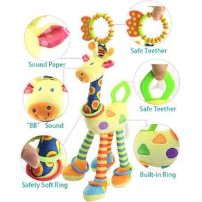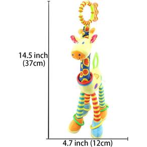 Pelúcia. Brinquedos de suspensão seguros e macios Os brinquedos para cadeirinhas de bebê são feitos de pelúcia com enchimento de algodão. Livre de BPA, não tóxico, sem danos para bebês. Pode ser lavado à mão. Cão bonito dos desenhos animados com cores brilhantes atrairá bebês e inspirará o desenvolvimento visual do bebê.. Brinquedos para berço Este berço brinca com carrilhão de vento embutido, agite-o com som de jingle. As duas orelhas do cachorro com papel farfalhar, ele sai com o som “Sa~sa~” quando o belisca. O som aumentará sua estimulação sensorial e treinará a audição do bebê.. Brinquedos para dentição infantil Com dois mordedores em babador e design de osso. Superfícies texturizadas que massageiam e estimulam as gengivas são perfeitas para auxiliar na erupção dos dentes dianteiros, médios e traseiros. O formato do babador pode ser retirado para usar sozinho.. Brinquedos de assento de carro com gancho de anel em C na parte superior dos brinquedos de chocalho, o tamanho interno é L1,8 * W 1,5 polegadas. Pode prender em qualquer lugar: carrinho de criança, berço, assento de carro, academia de atividades, tapete de brincar e etc. fácil de entregar ou retirar. Um pack n play toys para uso interno, ao ar livre e viagens.