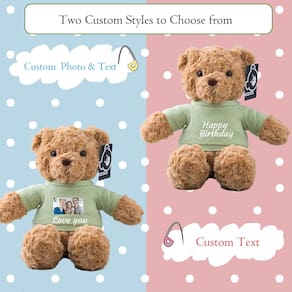 Presentes personalizados para mulheres e homens, ursinhos de pelúcia com texto personalizado, ursinho de pelúcia personalizado com camiseta como presentes especiais para o aniversário de Natal e Dia dos Namorados (texto e foto de 13 polegadas) -?Personalizável?A qualidade editável de nosso ursinho de pelúcia permite que você adicione qualquer coisa, um nome, o logotipo da escola ou sua bênção. Com um visual atraente e real, é um excelente presente personalizado para ele/ela/amigos/familiares/graduados, etc. Clique em “Personalizar agora” e faça o upload de suas informações personalizadas. Deixe que este urso de dia dos namorados fale por você! -?Material de alta qualidade?Feita de pele de alta qualidade, nossa pelúcia de urso é macia e confortável, fácil de lavar devido à sua fabricação à prova d'água. Você certamente se apaixonará por ela! As formas são projetadas por designers de renome mundial e produzidas por trabalhadores qualificados para garantir que seu texto personalizado seja impresso com precisão. Com olhos brilhantes e uma expressão confiante, o pelúcia Teddy Bear simboliza coragem, vigor e autoconfiança. -?Reconfortante e significativo?Totalmente costurado à mão e cuidadosamente feito, como uma obra de arte, nosso ursinho de pelúcia é adequado para mostrar seus parabéns e incentivo de uma forma especial, exclusiva de seu relacionamento. Com certeza os fará rir! Será um parabéns muito emocionante e inesquecível, ela/ele ficará emocionada e guardará este presente personalizado com eles por muitos anos. -?Presentes impressionantes?Nosso ursinho de pelúcia de Dia dos Namorados agradam a todas as idades, perfeitos para presentear em várias ocasiões, como: presentes de aniversário/Dia dos Namorados/Natal/formatura para ela e ele/formatura universitária! Este presente personalizado é uma bênção muito sincera que certamente impressionará o destinatário por muito tempo e o guardará por muitos anos como uma lembrança linda e preciosa para você e ele/ela. -?Excelente satisfação garantida?Basta expressar parabéns e incentivo aos seus amigos/familiares adicionando uma foto ou um texto engraçado aos presentes personalizados do ursinho de pelúcia. É nossa principal prioridade fornecer uma experiência satisfatória e de alta qualidade aos nossos clientes. Se você tiver alguma dúvida, sinta-se à vontade para entrar em contato conosco a qualquer momento, sempre tomaremos medidas imediatas para garantir a excelente satisfação do cliente.
