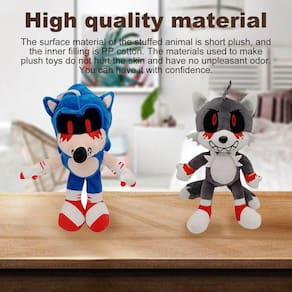 AVISO: Este produto pode conter pequenas peças, que são um risco de asfixia. Sugestão de supervisão de adultos. 1. Sonicx exe pelúcia: A clássica pelúcia sangrenta sonics vem com uma nova cauda de pelúcia sonics. O sonic exe e a cauda cinza no novo jogo parecem horríveis e é perfeito para quem ama jogos.2. Material de alta qualidade: o material de superfície do animal empalhado é de pelúcia curta, e o enchimento interno é algodão PP. Os materiais s para fazer brinquedos de pelúcia são amigos da pele e não têm odores desagradáveis. Você pode tê-lo com confiança.3. Tamanho adequado: O bicho de pelúcia é do tamanho certo e leve. Tails Plush é apenas o tamanho e peso certos. O brinquedo de pelúcia é fácil de transportar, pode levá-lo para brincar com os seus amigos ou mostrá-lo aos seus amigos.4. Multiuso: É uma escolha muito boa colocar brinquedos de pelúcia sônica em casa ou no carro como decoração. Você também pode usar o Sonic Thing como um travesseiro macio, o que é ótimo para sustentar durante um cochilo ou dormir. Deixe os brinquedos de pelúcia Sonics decorarem a sua vida.5. Um grande presente: Você pode dá-lo como um presente para sua família ou amigos, se sua família ou amigos gostam de desenhos animados e jogos Sonics, então você pode escolher este brinquedo de pelúcia. Está em muito bom estado e qualidade. Deixe o dom aprofundar seu relacionamento.