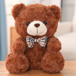 Material: pelúcia Tamanho: 25 cm Peso: 150 g Adorável ursinho de pelúcia marrom — Apresenta um ursinho de pelúcia marrom macio em uma linda pose de sentar, estilizado com uma gravata borboleta xadrez clássica para um visual encantador. Textura macia e fofa — Feita com material de pelúcia premium com enchimento suave, oferecendo uma sensação suave e abraçável, perfeita para se aconchegar. Compacto e leve — Com 25 cm, este pequeno ursinho de pelúcia é fácil de transportar, o que o torna ideal para crianças e também uma boneca de pelúcia decorativa para qualquer espaço. Construção durável e segura — Costuras de alta qualidade e materiais macios e adequados para crianças garantem durabilidade duradoura e uma companhia segura para brincar. Companheiro de pelúcia versátil — Ótimo para abraçar, brincar com imaginação ou aprimorar a decoração do quarto, berçário ou mesa com sua presença fofa.