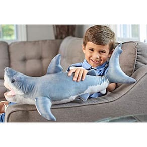 Esta pelúcia super realista de tubarão branco é um ótimo presente para crianças e entusiastas de tubarões. O tecido é impresso por sublimação permitindo detalhes incríveis e realistas.