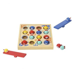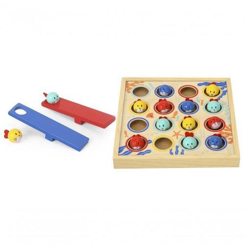 Prove suas habilidades com este jogo de peixes de madeira. Coloque o peixe na plataforma especial, marque o buraco redondo e pressione a área especial da plataforma para lançar o peixe. Divirta-se com seus amigos ou família e seja o primeiro a colocar mais peixes nos buracos. Um jogo que aprimora as habilidades motoras da criança, ao mesmo tempo que se concentra e se concentra em um objetivo, melhora a coordenação olho-mão.