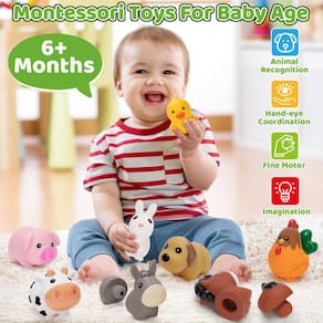 - Desenvolvimento precoce de habilidades motoras finas - Cada animal é composto por conexões corporais em duas partes que podem ser separadas e montadas novamente, e o corpo macio é fácil de apertar, o que é fácil para mãos pequenas, mas este brinquedo oferece boa resistência para melhorar a força dos dedos de bebês de 6 a 12 a 18 meses e exercitar as habilidades motoras finas.