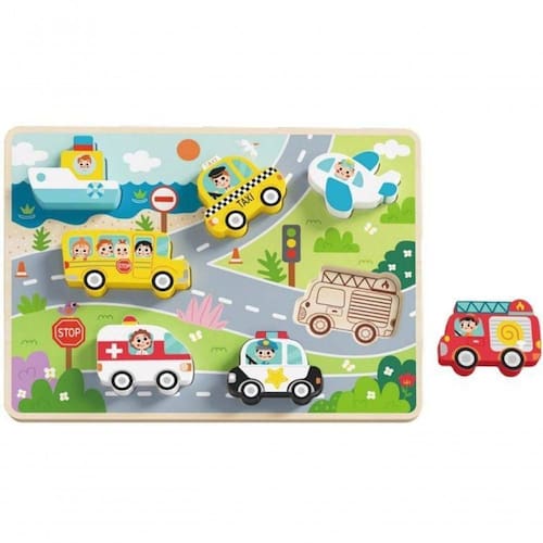 Os pequenos vão se divertir encaixando os veículos nos espaços correspondentes.