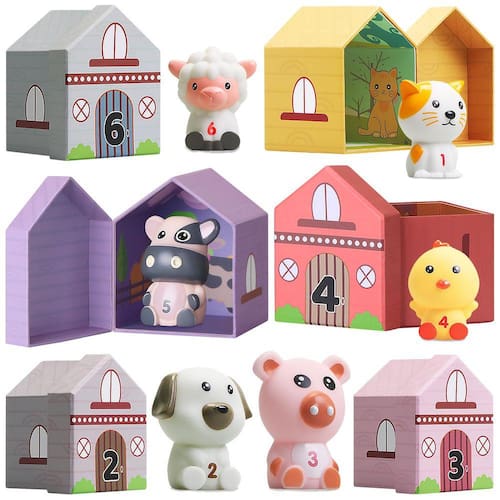 - Conjunto de brinquedos para animais de fazenda: brinquedos didáticos são a escolha perfeita para crianças em idade pré-escolar, com 12 peças, incluindo 6 adoráveis animais de fazenda e 6 celeiros. Cada animal foi cuidadosamente projetado para atender às preferências de seu filho, com detalhes realistas que incluem gatos, patos, vacas, ovelhas, porcos e muito mais. Esses animais encantadores certamente se tornarão os companheiros divertidos e envolventes de seu bebê.