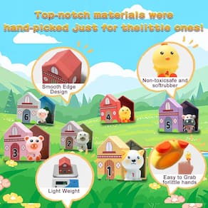 - Aprendizagem inspirada em Montessori: fantoches manuais para crianças de 1 a 3 anos foram projetados para promover o aprendizado precoce e o desenvolvimento cognitivo. As crianças podem explorar e aprender sobre seis animais de fazenda diferentes, pois cada animal e celeiro apresentam números correspondentes. Seu filho pode participar de jogos empolgantes de combinação de números e cores, ajudando-o a desenvolver habilidades essenciais de contagem, reconhecimento de cores, classificação e combinação. É um brinquedo educativo ideal para os primeiros anos do seu filho.