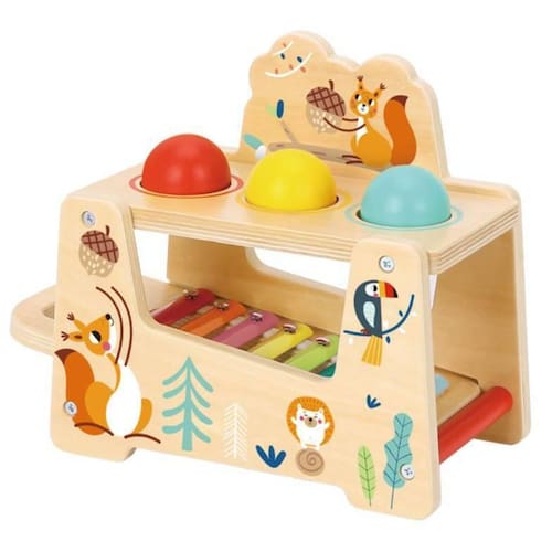 Descrição do Produto O Xilofone Divertido - Bichos foi projetado com padrões de esquilos fofos e interessantes, bolas coloridas e 8 cores de teclas de xilofone. As crianças podem bater na bola de madeira e cair no xilofone para fazer um som maravilhoso, ou pegar o xilofone sozinhas e tocá-lo.
