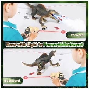 Apresentamos o incrível espinossauro de caminhada realista, inspirado na era Jurássica. Com patas traseiras projetadas para dobrar e levantar, ele se move como um dinossauro real, sem deslizar sobre rodas como outros dinossauros de controle remoto. O espinossauro é equipado com um controle remoto de rastreamento de luz, que faz o dinossauro andar para frente ou para trás quando a luz brilha sobre ele. Além disso, pressionando o botão Auto DEMO, o dinossauro robô executará um conjunto de ações para as crianças, como andar automaticamente, abanar o rabo, borrifar água e rugir. As luzes LED de água em spray e o rugido realista tornam a experiência ainda mais emocionante. O espinossauro de controle remoto foi projetado com detalhes realistas, como escultura precisa, dentes enormes e olhos 3D. Feito de material ABS resistente e de alta qualidade, nossos brinquedos de dinossauro são inodoros, resistentes ao desbotamento e seguros para crianças. Rigorosamente testado quanto à segurança, os pais podem se sentir confiantes permitindo que seus filhos brinquem. Medindo 33 x 15 x 12 cm, nosso espinossauro eletrônico é o brinquedo perfeito para as crianças aprenderem sobre dinossauros e cultura pré histórica. É uma excelente escolha para um presente de Páscoa, Natal, Halloween, aniversário ou feriado. Deixe sua imaginação e curiosidade sobre o mundo dos dinossauros jurássicos serem inspiradas por este incrível brinquedo de dinossauro.