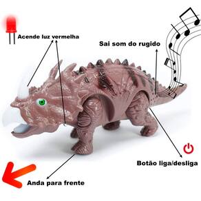 1 Brinquedo Dinossauro Tricerátops Com Luzes Led Som e Anda;