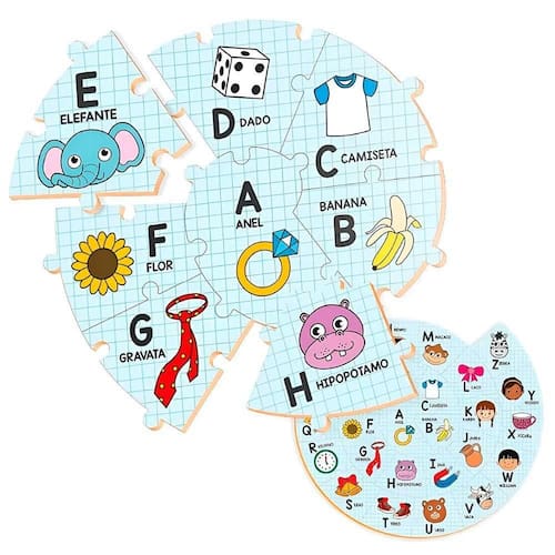 Descubra a magia de aprender brincando! Perfeito para as crianças aprenderem o alfabeto de forma lúdica e divertida. Com um design colorido e atrativo em formato de caracol, as crianças vão adorar explorar cada letra e associá-la a imagens e palavras. Benefícios: -Auxilia no reconhecimento das letras e suas formas. -Estimula o raciocínio lógico. -Incentiva o aprendizado do alfabeto de forma prática e visual. -Perfeito para atividades em grupo. -Desenvolve a coordenação motora fina ao manipular as peças. -Tamanho compacto e fácil de manusear. -Pensado para durar, mesmo nas mãos mais curiosas! Especificações Técnicas: - Modelo: Alfabeto Caracol - Material: MDF - Dimensões do Alfabeto Montado.: 31,5cm (ALTURA) x 34cm (LARGURA) - Idade Recomendada: +4 Anos Itens Inclusos: - 26x Peças de Quebra Cabeça com Letras