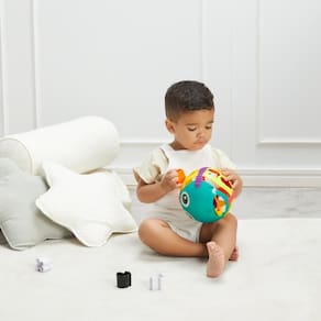 Com diferentes texturas e cores, a bola de Atividades da Buba vai estimular a coordenação motora do pequeno. Possui diferentes peças para encaixar em sua estrutura maleável. O bebê vai se divertir e explorar novas habilidades e sensações.