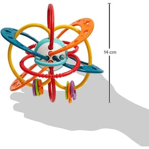 O Space Ball é perfeito para entreter e desenvolver os sentidos do bebê e massagear a gengiva. Macio e com arcos flexíveis, estimula o tato, auxiliando o pequeno a descobrir novas formas. É leve, fácil de segurar e possui som de chocalho, ideal para atrair a atenção.