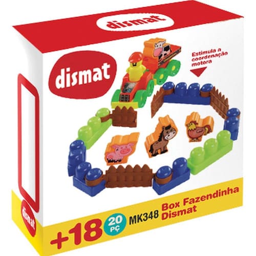 R: O Brinquedo Educativo Box Fazendinha 20 Peças Dismat auxilia no desenvolvimento do raciocínio lógico, coordenação motora, além de proporcionar aprendizado do alfabeto e números.