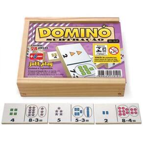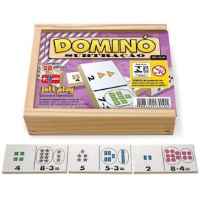 Dominó de Frações composto de 28 peças em MDF com imagens coloridas e "vivas" que facilitam o aprendizado.