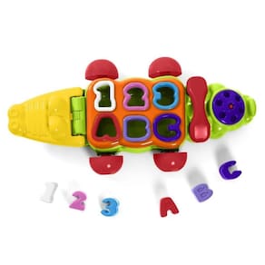 Ele é um jacaré muito simpático que vem com formas didáticas de cores diferentes e encantadoras letrinhas a, b e c e números 1,2 e 3 que encaixam no corpo do brinquedo, um lindo telefone com discador e também este lindo jacaré abre e fecha boca e possuiu uma super lingua didatica além disso ele possui rodinhas livres para puxar e levar o amiguinho para passear. Além de divertido, este brinquedo é criativo e cheio de aprendizado