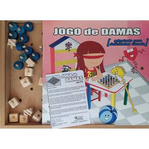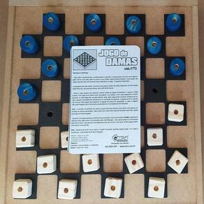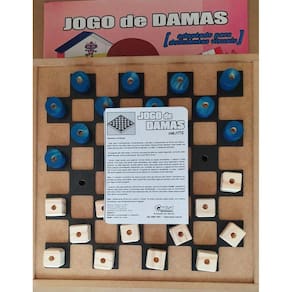 Brinquedo educativo jogo de damas adaptado estojo em mdf - carlu 1772 jogo de damas adaptado braille Composto por 1 caixa tipo estojo em mdf Medindo 30 x 30x 30 x 4 cm , Parte inferior contém o tabuleiro de dama em baixo relevo para identificação das casas e furos para encaixe das peças. Acompanham 24 peças adaptadas para o jogo 12 peças redondas pintadas 12 peças quadradas natural Caixa em mdf tamanho 30 x 30x 4 cm