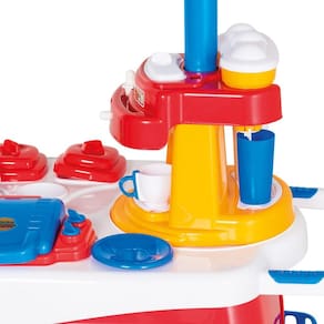 A Lanchonete Completa da Tateti é possível colocar o hambúrguer na chapa para tostar, pega as batatas na frigideira, prepara um delicioso cachorro quente e um suco para acompanhar! Ainda tem sorvete e até um cafezinho. A Lanchonete Completa é super equipada! Tem forno e geladeira para o pequeno chef fazer lanchinhos para todos os amigos.