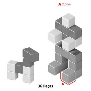 Composição peças: acrílico, metal e imã Dimensões das peças: 2,3x2,3x2,3cm Dimensões da embalagem : 23cm x 6cm x 6cm