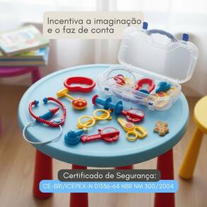 Medidas da maleta: A- 14cm / L- 26cm / P- 8cm Acessórios inclusos: 7 peças - Óculos, Estetoscópio, Bandeja, Tesoura, Adipômetro, Seringa e Balança. Recomendado para maiores de 3 anos Segurança de Brinquedos: CE-BRI/ICEPEX-N 01336-64 NBR NM 300/2004 Fabricante: PakitoysRef.: 1265 (Mini Doutor)