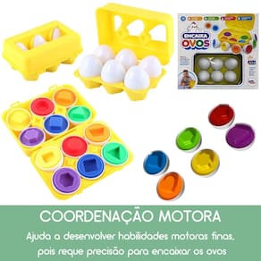 Brinquedo Educativo Montessori Infantil Caixa de Ovos Encaixe Brinquedo Educativo Montessori Infantil Caixa de Ovos De Encaixar Formas Geométricas Cores Sensorial Brinquedo Educativo versátil que incentiva a imaginação e o pensamento lógico da criança Os ovos de Encaixar Egg Matching Toy , são perfeitos para brincar e ao mesmo tempo aprender as formas, cores, ação e reação, estimula a coordenação motora; O ovo é fabricado de material plástico de qualidade, seguro e resistente Também pode ser para fazer um jogo da memória, carimbo, brinquedo para banheira... As possibilidades de brincadeiras são infinitas Cada ovo revela uma forma diferente para a criança encaixar e aprender - Marca: Paki Toys - Dimensões: 26,5 x 26,5 x 7 cm - Dimensões do Produto: - Referência: 4088 - Faixa Etária: indicado para crianças à partir de 12 meses - Contém: 1 estojo e 6 ovos para montar com cores e formas diferentes - EAN: 7898676721236 - Certificado pelo INMETRO Registro 001586/2022 CE-BRI/ICEPEX-N-01398-64 Na Tralalá 4 Kids, dedicamo-nos a transformar aprendizado em diversão, oferecendo brinquedos pedagógicos de qualidade para o desenvolvimento integral da criança. Homologação Inmetro: CE-BRI/IQB 006429 54879/21-001 Marca: Não Informado Ean: 7898676721236