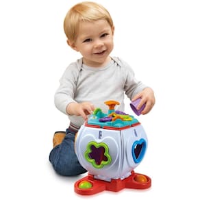 Brinquedo diferenciado, pressione o botão e as faces se abrem...São 05 faces e cada uma tem um formato para encaixe.Acompanha 05 cubos didáticos coloridos.Com atividades na tampa, uma rodinha que gira e faz Creck-Creck, plaquinhas com carinhas simpáticas, aperte a minhoca, ela tem melodia Com rodinhas.Recomendado a partir de 06 meses.Desenvolvimento:coordenação entre Olhos e Mãos.Coordenação Motora Fina - Mãos e ão e Concentração.Compreensão de Causa e Efeito.Curiosidade e Descoberta.Integração Viso espacial, compreende a habilidade para girar, compor objetos, manipular formas e dimensões no espaço. Homologação Inmetro: IP-BRI-0479/2022-100
