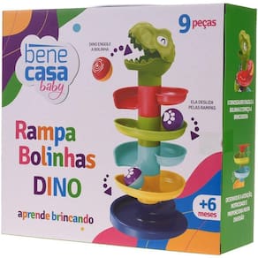 Brinquedo Rampa com Bolinhas, diversão garantida. Além de auxiliar no desenvolvimento da criança o brinquedo em formato de dino engole as bolinhas traçando um trajeto até o final da rampa, que tem formato circular.