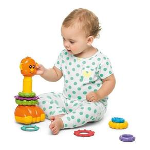 Zoo Argolas Calesita vem com oito argolas coloridas em cores vivas e vibrantes, cada argola pode ser montada conforme os tamanhos, ajudando o bebê na coordenação motora, além de divertir ensina o encaixe das argolas.