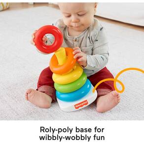 Fisher-Price Brinquedo empilhável para bebês Rock-A-Stack, base roly-poly com 5 anéis coloridos para idades a partir de 6 meses