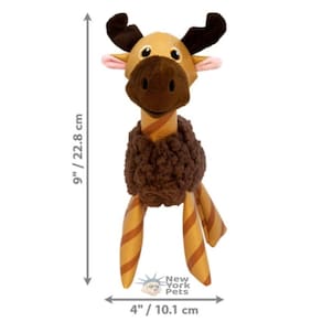Sobre este item •Este brinquedo tem um corpo de lã fofo com um grande apito para diversão sem fim. •A cabeça e as pernas de couro sintético realçam as características multissensoriais do brinquedo. •As pernas são preenchidas com material amassado para criar ruídos de chicote e estalo durante a brincadeira. •Convide seu cãozinho a sacudir, mastigar, bater e arremessar este brinquedo de alce para uma brincadeira ativa. •Este brinquedo de pelúcia é feito com materiais macios para uma brincadeira suave e abraços reconfortantes.