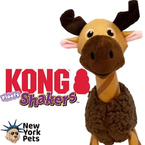 KONG Floofs Shakers um brinquedo leve, com tamanho razoável, que é convidativo para brincadeiras dentro de casa. Mesmo que atirado em algum objeto de valor, como é leve, dificilmente causará um prejuízo. Possui apito e estalidos que tornam a brincadeira ainda mais atrativa e duradoura. O seu corpo achatado o torna fácil agarrar por cães de qualquer tamanho.