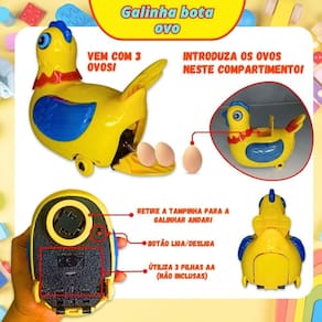 ''brinquedo galinha bota ovo anda com som música e luzes''
