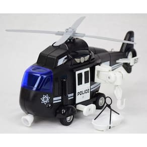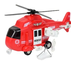 Brinquedo Helicóptero Resgate Polícia ou Bombeiro c/ Luz e SomO helicóptero de Polícia ou Bombeiro Resgate é um brinquedo super realista com luzes e sons de verdade.Ao apertar o botão na lateral da porta que as hélices começam a girar, conforme aperta a hélice gira e gira.Cordas descem com a maca para socorrer o acidentado.Possui rodas com fricção, ou seja, é só pressionar o carrinho em uma superfície e puxar ou empurrar que ele vai andar sozinho.Especificações:- Necessário 03 baterias do tipo "AG13" 1,5V (INCLUSAS)- Idade Recomendada: +3 Anos- Material: plástico- Dimensões da embalagem (AxLxP): 19x32x12cm- Conteúdo na embalagem: 01 Helicóptero Resgate Polícia ou Bombeiro *** CASO DESEJE ESCOLHER O MODELO, MANDAR NO CAMPO DE MENSAGEM ***