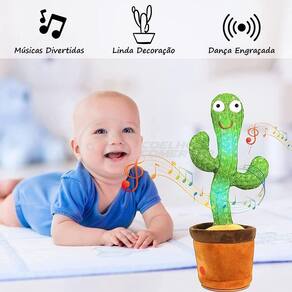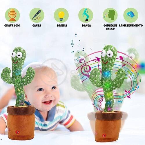 Brinquedo Infantil Criança Tiktok Cacto Dançante Luminoso Pelúcia 120 Músicas Canta Fala Repete Usb