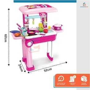 O Kit Chef Cozinha 2 em 1 é aquele brinquedo que proporciona a integração viso-espacial, que compreende a habilidade para gerar imagens, compor objetos, manipular formas e dimensões no espaço. A cozinha maleta 2 em 1 possui diversas comidas e acessórios para seu filho cozinhar, fogão com luzes, pia e escorredor de prato com o objetivo de trazer o faz de conta o mais perto da realidade. - Expressão e comunicação;- Imaginação e criatividade;- Estimula a coordenação motora;- Aprendizado pela repetição;- Cria relações com o espaço à sua volta;- Incentiva e induz à autonomia da criança em montar e desmontar seu próprio brinquedo; - Exercita o senso de Organização;- Menos Ansiedade e Mais Percepção do tempo;- Exercita o físico e o mental, colaborando com a memória;- Cores vibrantes e materiais robustos deixam a brincadeira ainda melhor;- Acabamento todo arredondado que traz extrema segurança para as crianças brincarem;- Encaixes perfeitos;- 25 Acessórios Inclusos. CARACTERÍSTICAS TÉCNICAS:Material: Plástico PPMedidas: 53cm altura x 63cm largura x 24,5cm comprimento Dimensões da maleta: 33cm altura x 22cm largura x 11cm comprimento Idade recomendada: A partir de 3 anosCertificado pelo INMETRO 004181/2020Necessita 3 Pilhas AAA não inclusas Peso: 1,7kgMarca: Baby StyleRef.: 668633
