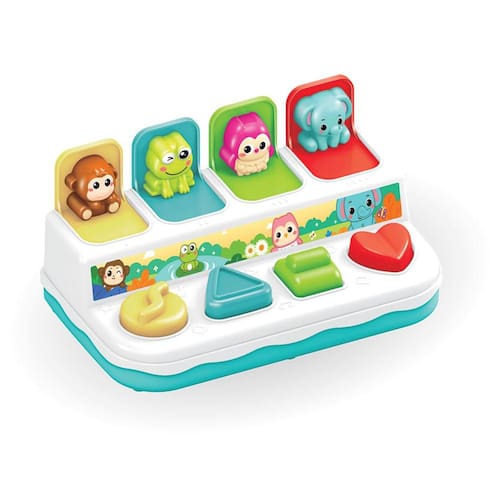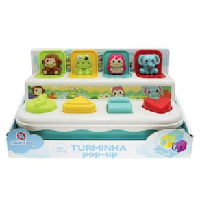 Turminha pop-up é composto por 4 botões interativos e o desafio da brincadeira é descobrir como cada um funciona. Tem botão para apertar, girar, empurrar e é preciso o movimento certo para encontrar os animaizinhos!