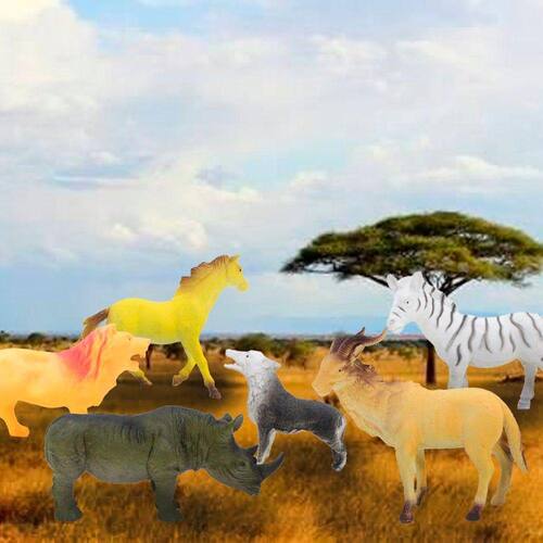 Brinquedo Infantil Kit 6 Animais Selvagens Em Miniatura De Borracha -