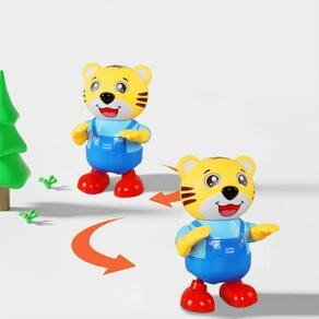 Com luz e música o brinquedo musical tigre fofo se movimenta com seus braços, balançando sua cabeça, tocando música interessante e luzes suaves que podem criar uma atmosfera feliz.
