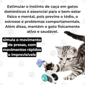 Feito de plástico resistente, o Brinquedo Interativo Para Gatos é durável e seguro para o seu animal de estimação. Este brinquedo não emite sons, mas seu movimento ágil e inesperado certamente manterá seu gato alerta e ativo. Proporcione ao seu felino uma experiência de brincadeira interativa que estimula o exercício e a diversão, contribuindo para o bem-estar e a felicidade do seu amigo peludo.